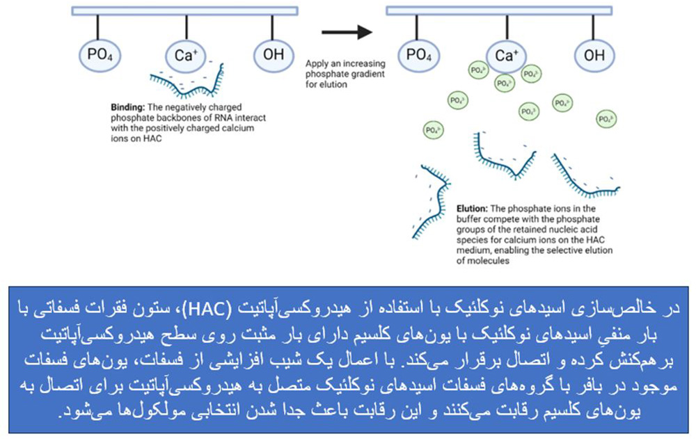 کروماتوگرافی HAC که بر پایه تعامل فسفات-کلسیم عمل میکند، روشی امیدبخش برای جداسازی dsRNA و ssRNA ارائه میدهد. اما کاربرد آن در پالایش mRNA در فرایند IVT ، محدود باقیمانده است.